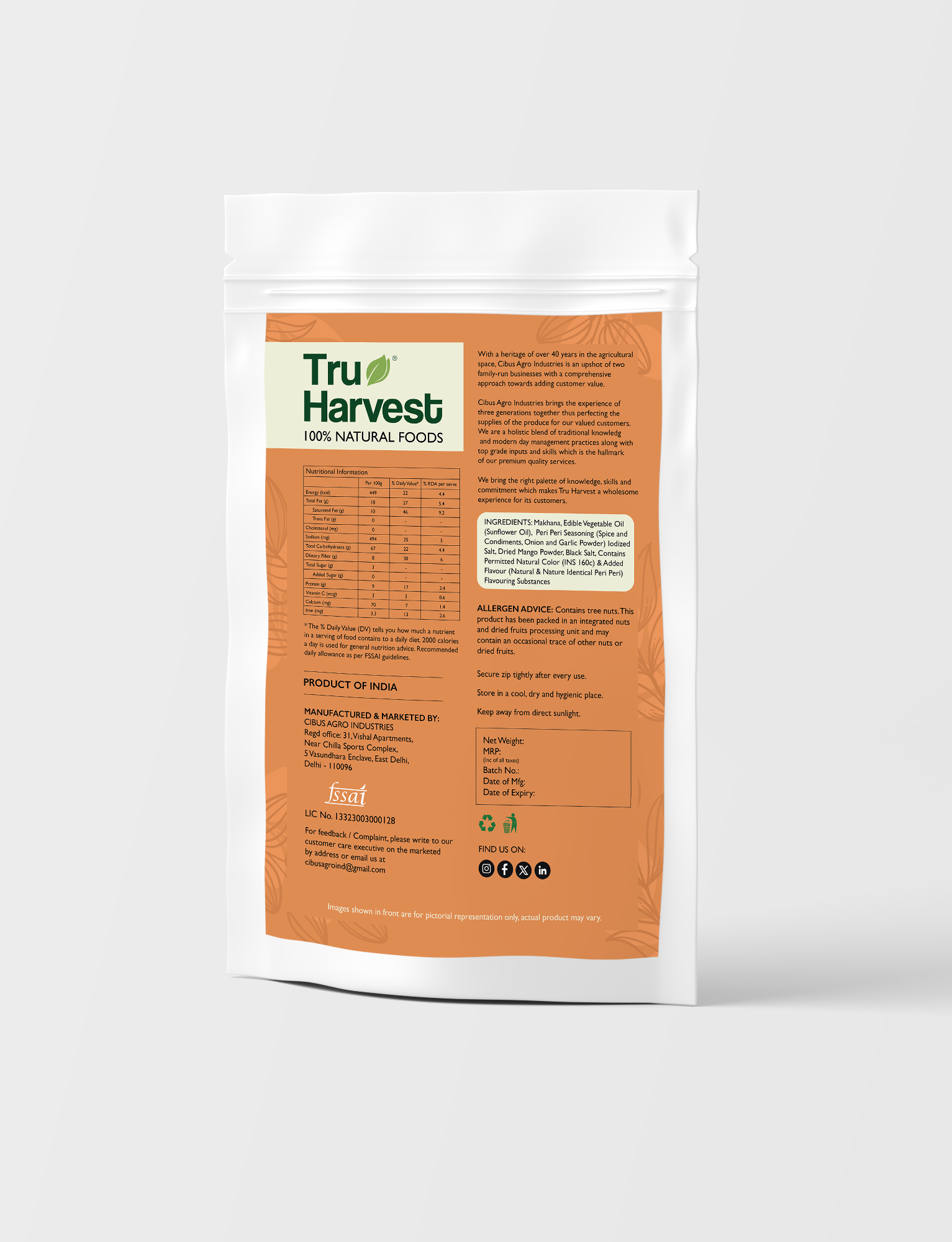 Calories: Approximately 347 calories per 100 grams.